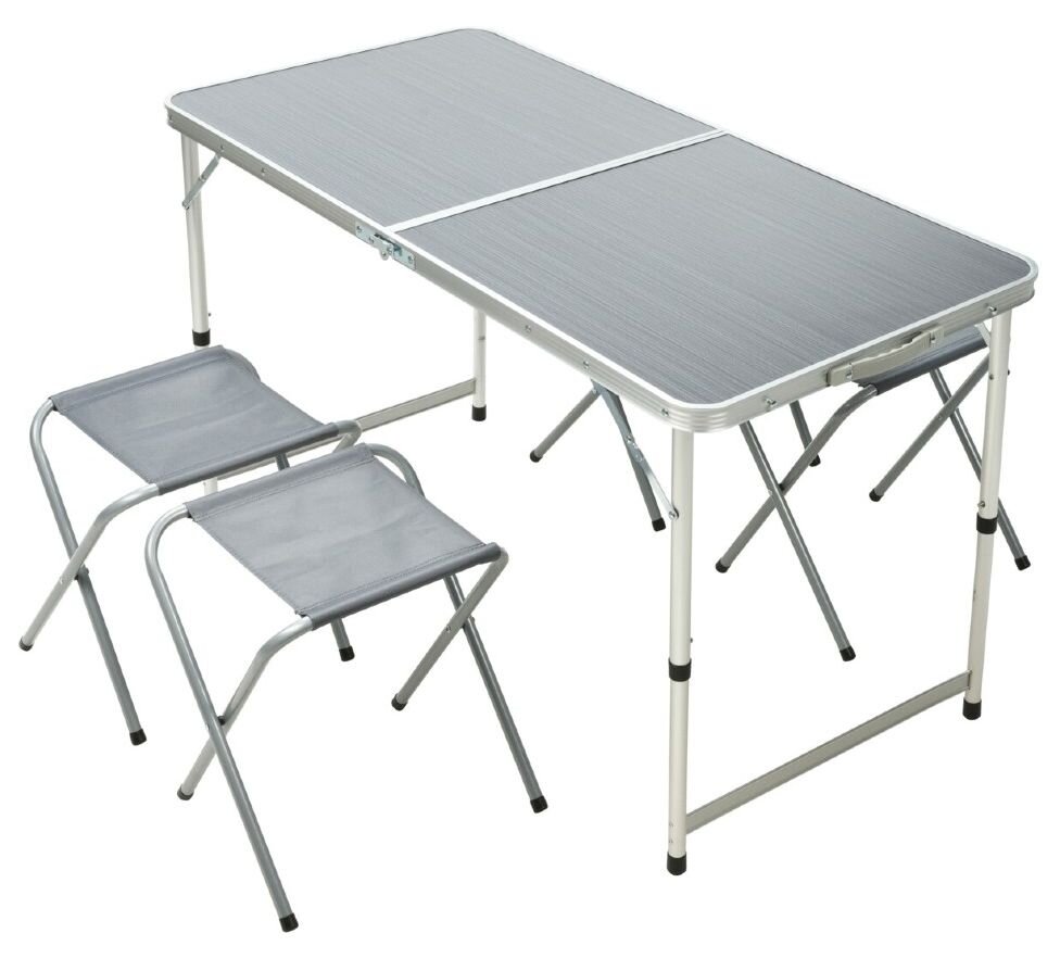 Užijte si pohodlí a praktičnost s naším setem campingového stolu a čtyř skládacích židlí. Tento set je navržen tak, aby byl lehký, snadno přenosný a ideální pro vaše outdoorové aktivity.