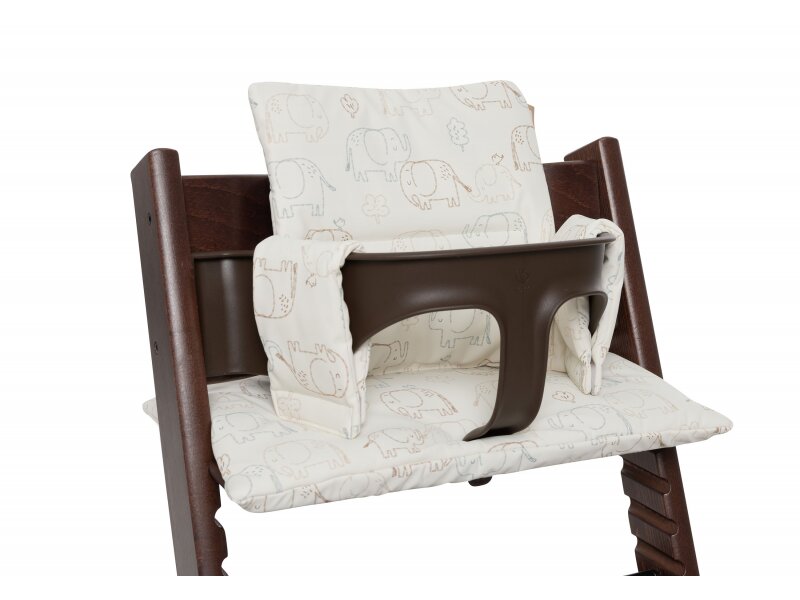 Dopřejte svému dítěti maximální pohodlí při sezení v rostoucí dřevěné židličce. Měkce polstrovaná podložka s voděodolným potahem je odolná a snadno se čistí otřením. Hravý potisk motivů slůněte dodají dětskému jídelnímu koutku veselý a přívětivý vzhled.
