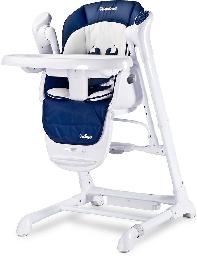 Krásná dětská jídelní židlička 2v1 Caretero Indigo. Nabízí židličku a houpačku v jednom setu.
