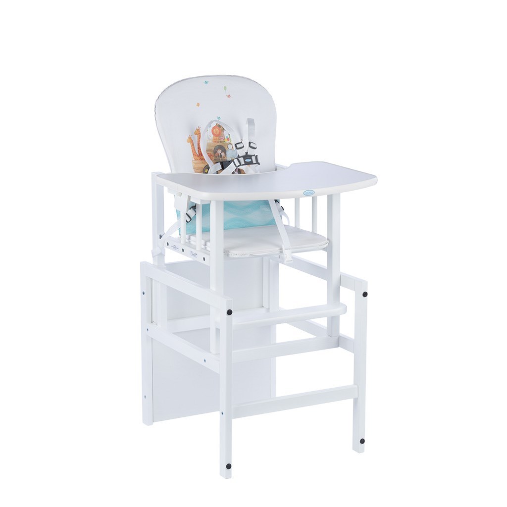 Multifunkční židlička Drewex Antonio je vyrobena z kvalitního borovicového dřeva. Jídelní židličku lze rozložit a použít jako samostatný stůl se židličkou, což lze využít také během zábavy. Výška samostatné židličky je 71 cm. Rozměry: cca 102x53x45cm. Rozměry: židlička složená: cca 102x53x45cm. Rozměry: samotná židlička : šířka sedací část : cca 36 cm, délka sedací části : cca 28 cm, výška zádové opěrky: cca 45 cm. Momentálne v nabídce s bílým táckem.