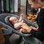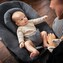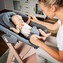 - Pro novorozence použijte měkké vnitřní přídavné polstrování sedátka se zesílenou opěrkou hlavy. Polstrovaný 3-bodový pás miminko dokonale zabezpečí. Pokud si děťátko žádá změnu, lze nástavec pro novorozence jednoduše upevnit na houpací stojan a rázem se pomocí několika tahů vykouzlí prémiová kolébka, která se může buď houpat spolu s přirozenými pohyby miminka, nebo se jednoduše zajistí.