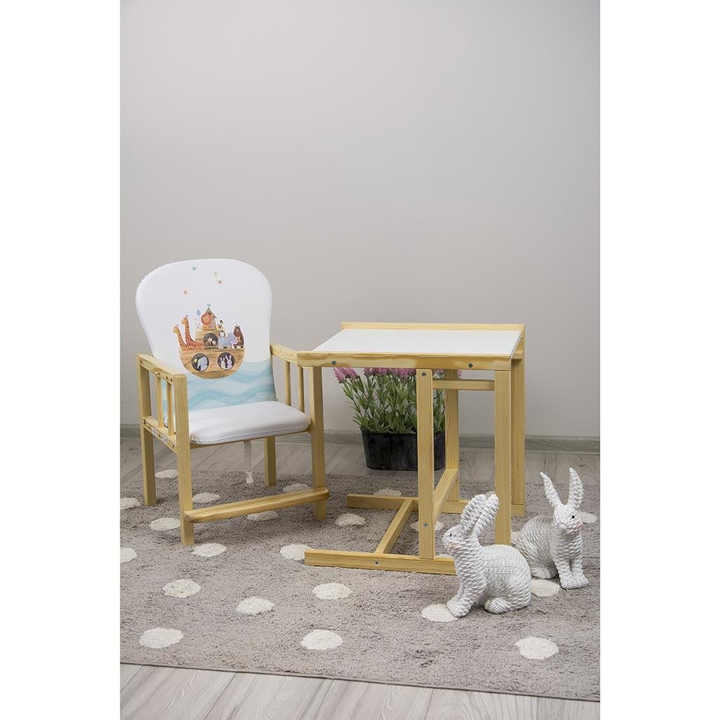 Multifunkční židlička Drewex Antonín je vyrobena z kvalitního borovicového dřeva. Jídelní židličku lze rozložit a použít jako samostatný stůl se židličkou, což lze využít také během zábavy. Výška samostatné židličky je 71 cm. Rozměry: cca 102x53x45cm. Rozměry: židlička složená: cca 102x53x45cm. Rozměry: samotná židlička : šířka sedací část : cca 36 cm, délka sedací části : cca 28 cm, výška zádové opěrky: cca 45 cm. Momentálne v nabídce s bílým táckem.