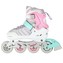 NILS Extreme NH18192 jsou kolečkové brusle 4v1 s vyměnitelným nožem na led, které jsou určeny pro začínající a středně pokročilé uživatele. Hliníkový podvozek je osazen měkkými PU kolečky s ložisky ABEC7 pro svižnou jízdu. Vnější bota je pomocí stisku tlačítka nastavitelná do čtyř velikostí, toto řešení umožňuje precizní přizpůsobení velikosti podle aktuálních potřeb anebo se používá jako "rostoucí bota", která "roste" spolu s nohou dítěte. Na špičce jsou ventilační otvory pro maximální prodyšnost. Vnitřní bota je vyrobena z kombinace semiše, síťoviny MESH, EVA a pěny o vysoké hustotě. Zapínání je řešenou klasickou trojkombinací - šněrování, řemínek se suchým zipem a dvousekční přezka. Součástí balení je sada šroubů a podložek pro přestavbu podvozku do konfigurace 2+1 a 2+2 a pár nožů na led, které jsou vyrobeny z nerez oceli s vysokým podílem uhlíku.