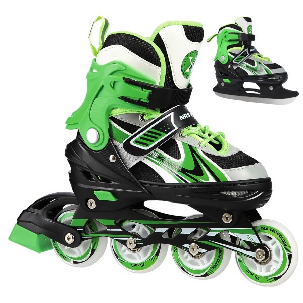 Nils Extreme NH 18188 A jsou stylové brusle pro milovníky jízdy jak na asfaltu, tak na ledě. Jejich vysoká kvalita zaručuje dlouhou životnost a vysokou odolnost vůči poškození. Model NH 18188 A byl také vybaven čtyřstupňovým nastavením velikosti boty, kdy je možné ji nastavit dle potřeb uživatele. Je to způsob, jak ušetřit čas i peníze. Takové řešení prodlužuje jejich životnost a umožňuje, aby byly používány více než jednou osobou, nebo se dají použít jako brusle rostoucí s nohou dítěte. Zapínání brusle je řešeno trojkombinací plastové přezky, suchého zipu a klasického šněrování. Nůž je vyroben z tvrdé, nerezové oceli. Kolečková lišta je osazena kolečky o tvrosti 82A a ložisky ABEC7.