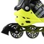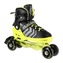 NILS Extreme NH18192 jsou kolečkové brusle 4v1 s vyměnitelným nožem na led, které jsou určeny pro začínající a středně pokročilé uživatele. Hliníkový podvozek je osazen měkkými PU kolečky s ložisky ABEC7 pro svižnou jízdu. Vnější bota je pomocí stisku tlačítka nastavitelná do čtyř velikostí, toto řešení umožňuje precizní přizpůsobení velikosti podle aktuálních potřeb anebo se používá jako "rostoucí bota", která "roste" spolu s nohou dítěte. Na špičce jsou ventilační otvory pro maximální prodyšnost. Vnitřní bota je vyrobena z kombinace semiše, síťoviny MESH, EVA a pěny o vysoké hustotě. Zapínání je řešenou klasickou trojkombinací - šněrování, řemínek se suchým zipem a dvousekční přezka. Součástí balení je sada šroubů a podložek pro přestavbu podvozku do konfigurace 2+1 a 2+2 a pár nožů na led, které jsou vyrobeny z nerez oceli s vysokým podílem uhlíku.