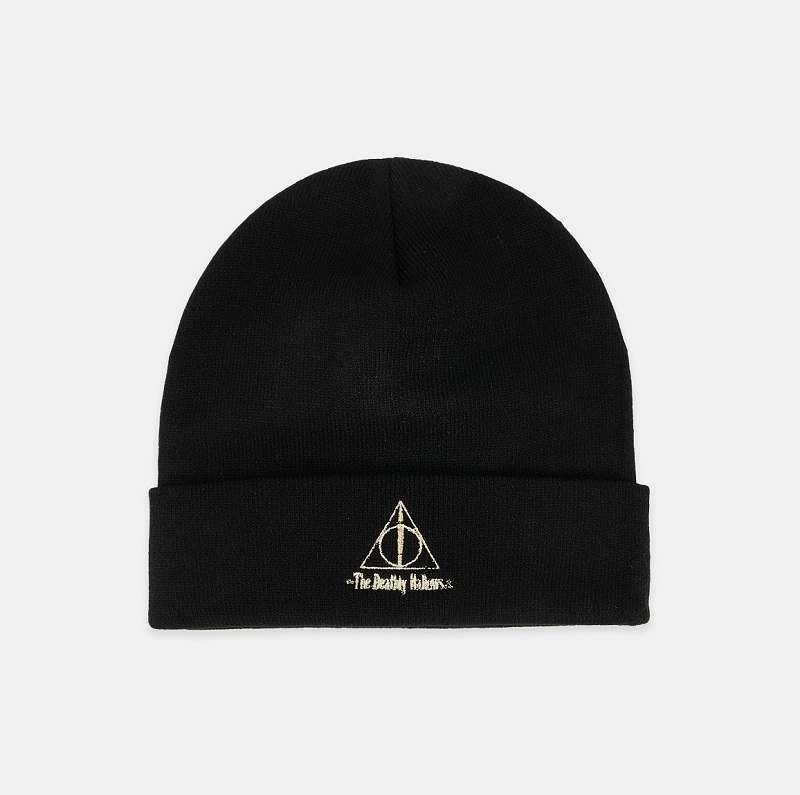 Černá zimní čepice se symbolem Relikvií smrti. Oficiální licencovaný produkt.