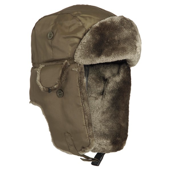 Pilotní beranice MA1. Barva: zelená. Dvě velké uši k zapnutí pod bradu. Zateplená kožíškem. Materiál: 100% polyester. číst celé