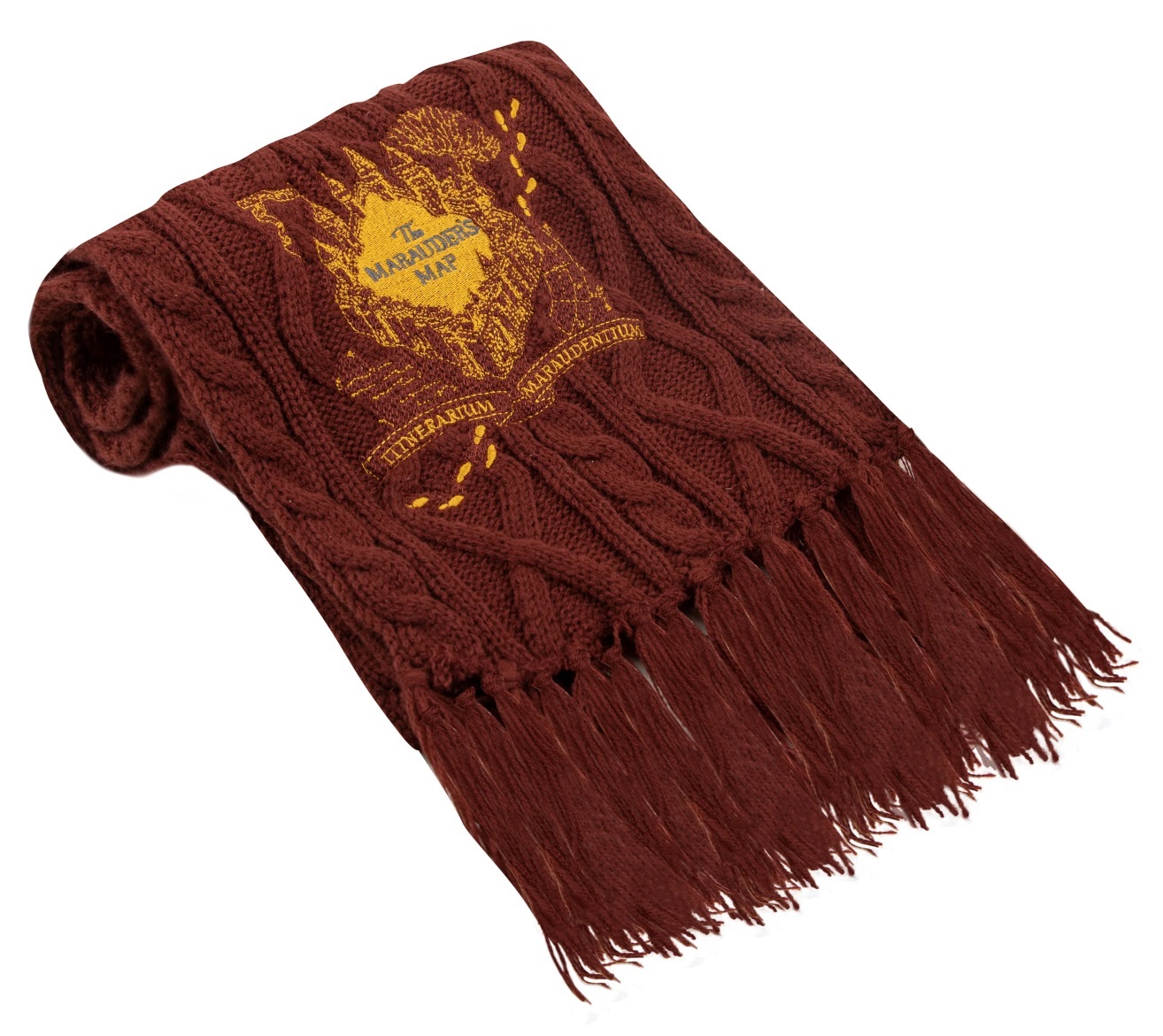 Dopřejte si kouzlo Harryho Pottera s nádhernou šálou v kaštanovém odstínu s designem Pobertova plánku. Na jednom konci se rozvine nezaměnitelný symbol plánku a na druhém konci je tučným písmem zobrazena fráze „Moony, Wormtail, Padfoot Prongs“.