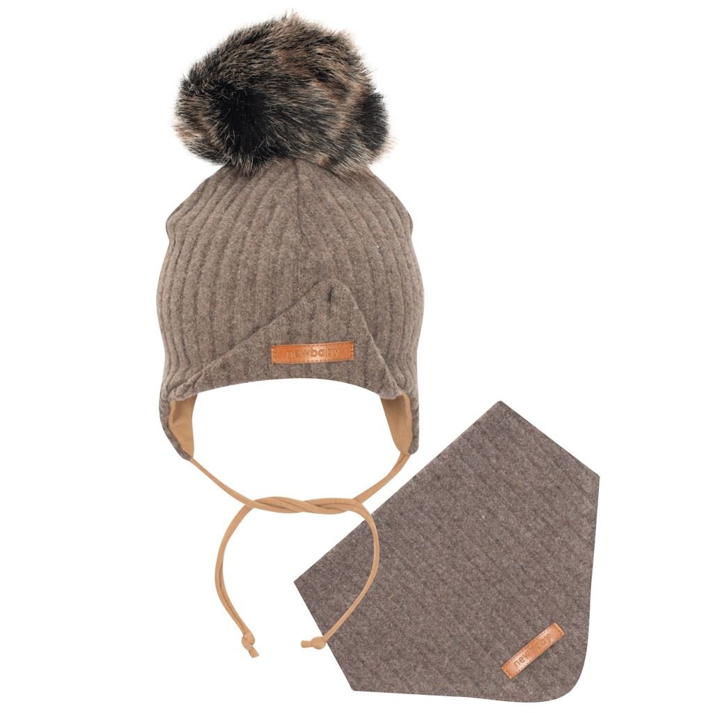 Podzimní kojenecká čepička s šátkem na krk New Baby Special One hnědá - velikost 74 (6-9m)
