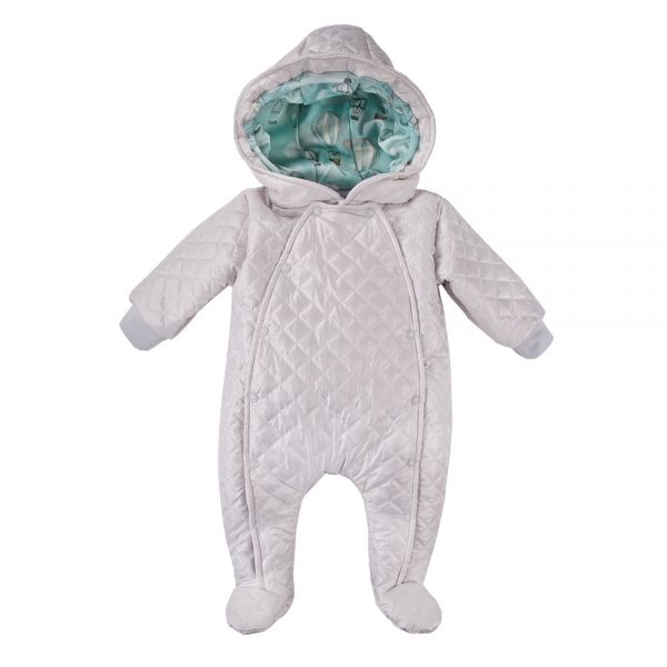 EEVI Dětská přechodová, prošívaná kombinéza s kapucí - šedá ; 56 (1-2m)