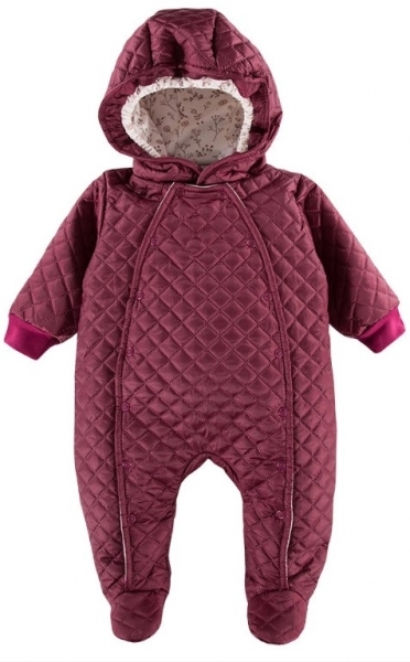 EEVI Dětská přechodová, prošívaná kombinéza s kapucí Bloom - bordó; 56 (1-2m)