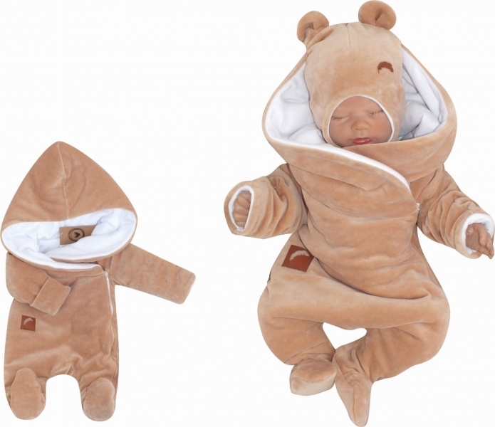 Z&Z Zimní kojenecký velurový overal s bavlněnou podšívkou - béžový, vel. 68