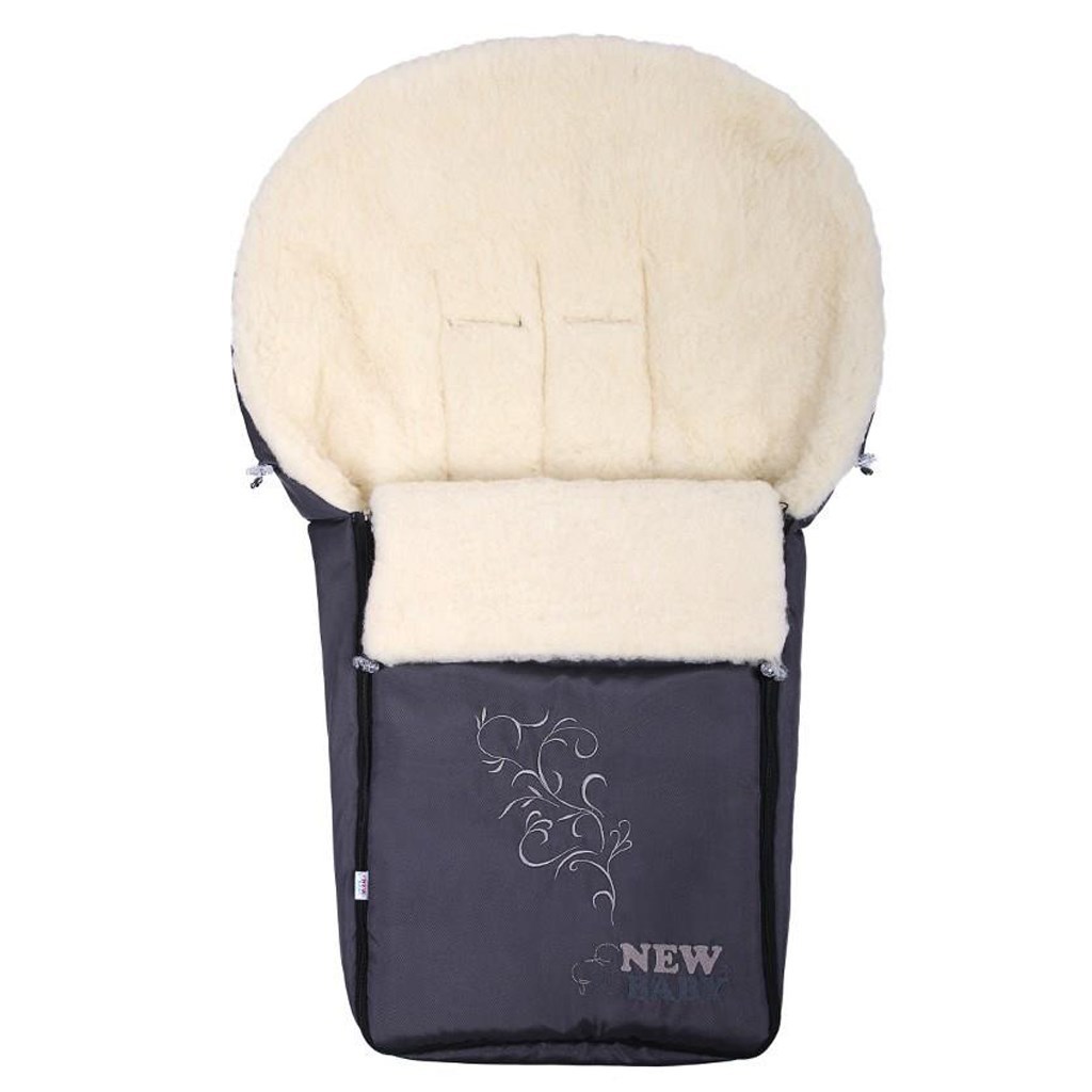 Dětský zimní fusák New Baby s ovčím rounem. Má na zadní straně praktickou kapsičku, díky které fusak lépe drží na kočárku.