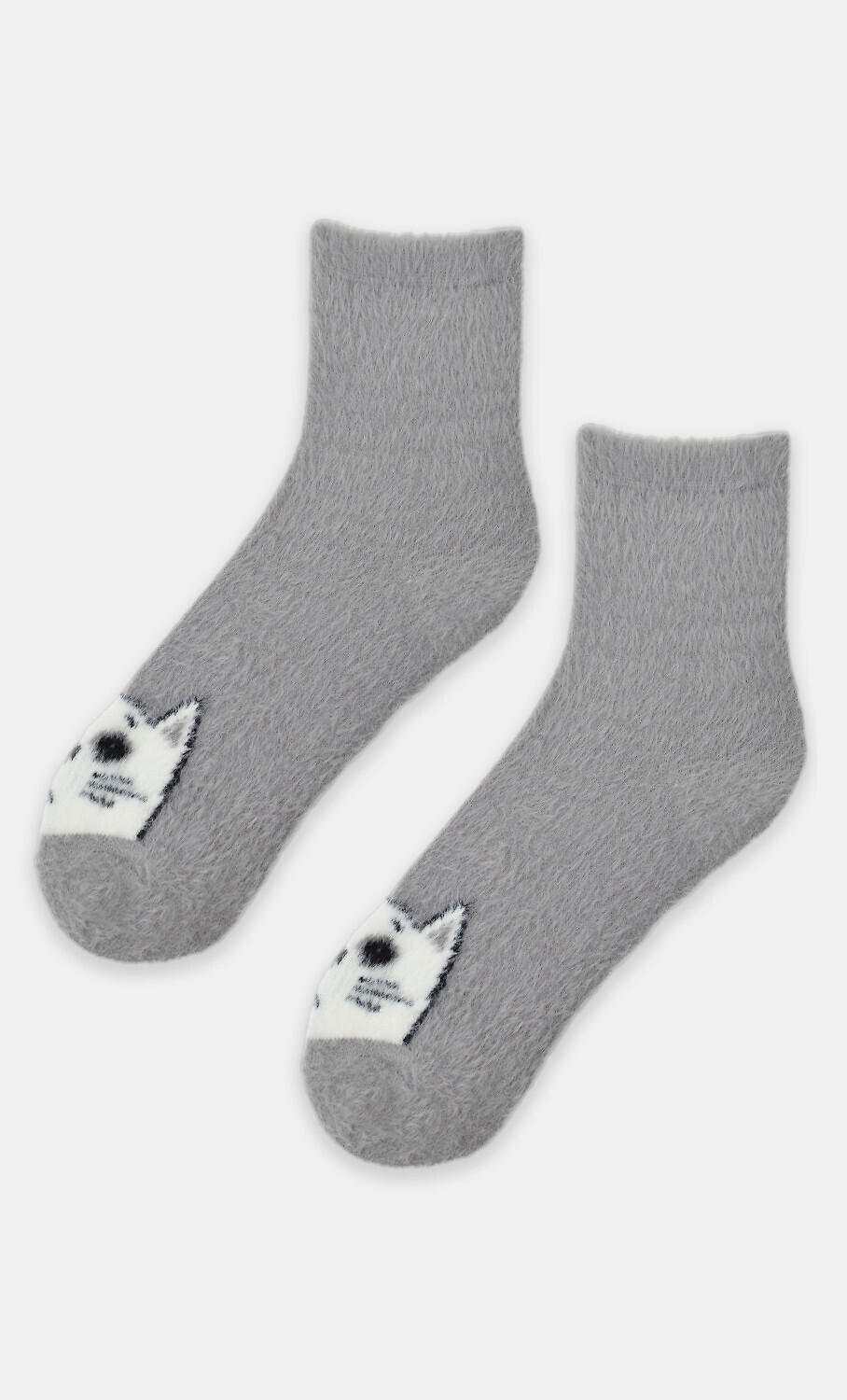Skarpety damskie- miękka puchata dzianina- nieuciskający ściągacz- wzór w kotki- idealne na prezent