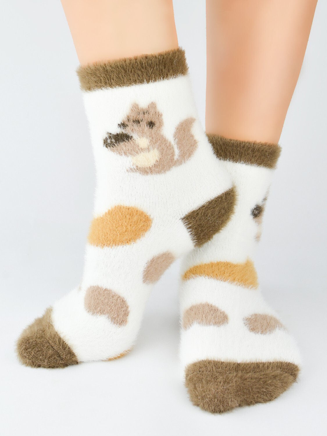 Skarpety damskie- miękka puchata dzianina- nieuciskający ściągacz- wzór wiewiórka- idealne na prezent