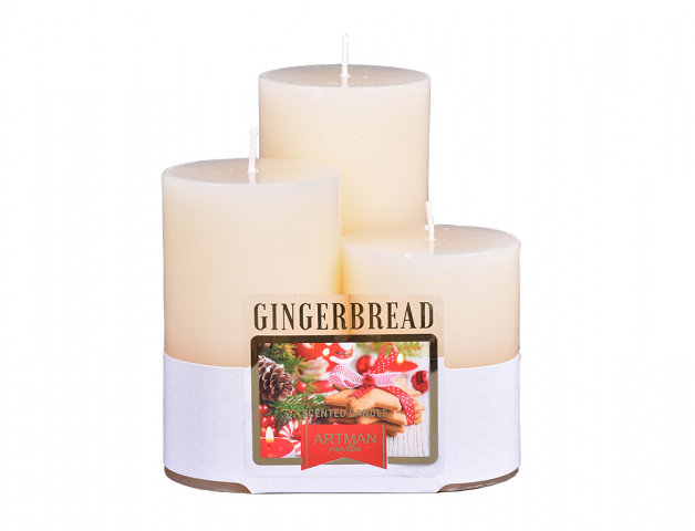 Svíčka COOKIES WINTER perníček d6x7,5/10/12,5 3ks