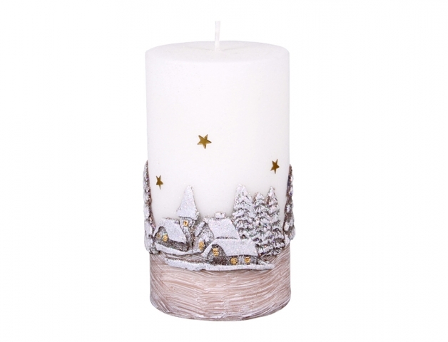 Svíčka ZIMNÍ SEN VÁLEC DIODA vánoční d7x12cm