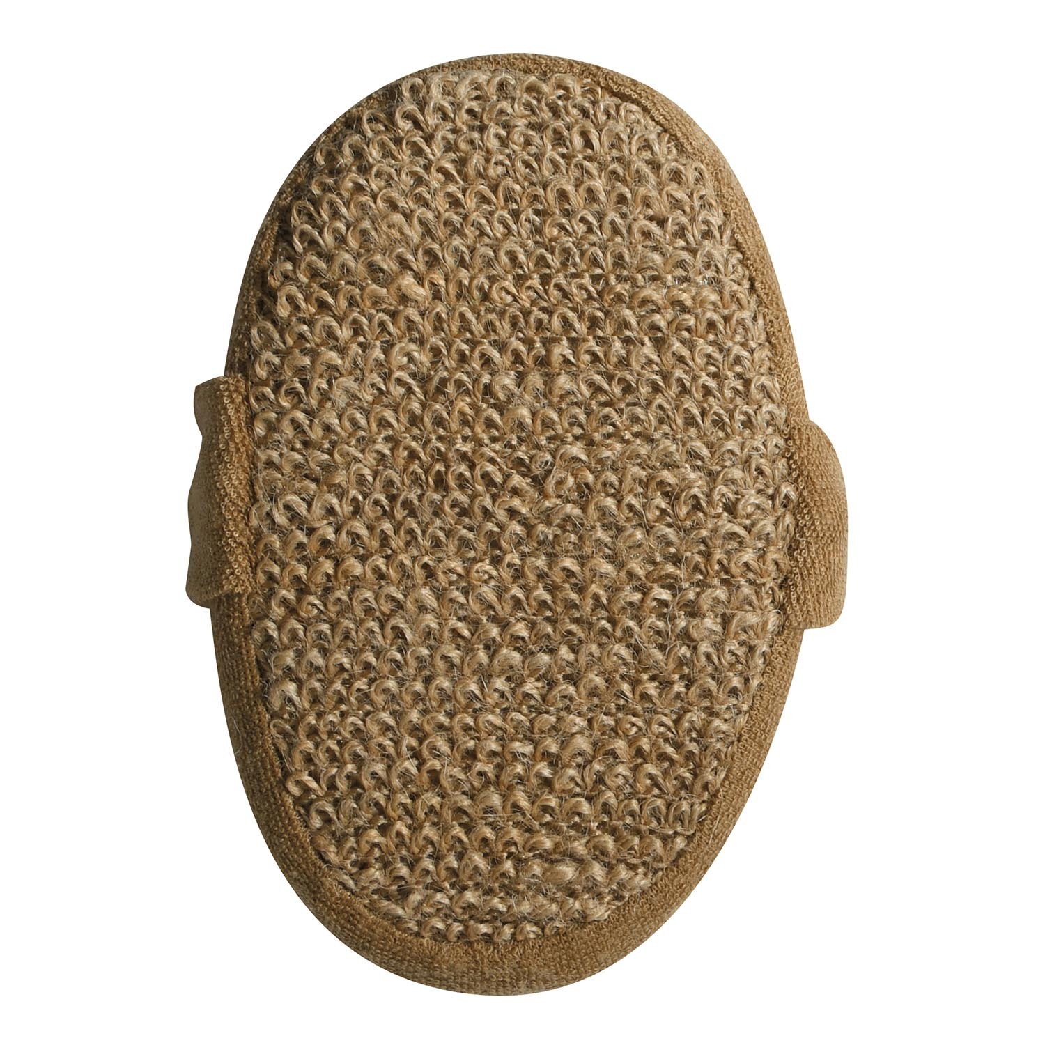Díky mírně drsné struktuře jutových vláken je čištění přírodní a šetrné zároveň. Houba zároveň stimuluje krevní oběh, což má pozitivní vliv na pevnost a vitalitu pokožky. Praktický úchyt na ruku zajišťuje pohodlnou manipulaci a usnadňuje každodenní použití.