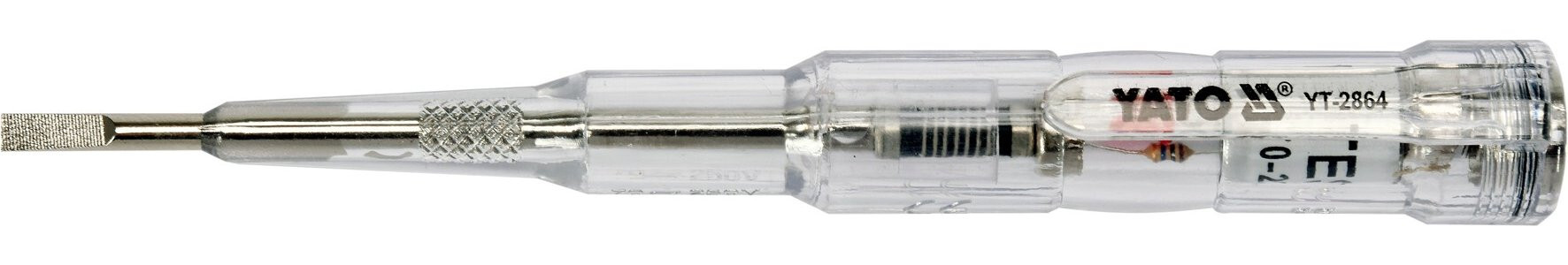 Zkoušečka napětí v rozsahu 70 - 250 V. Indikátor je určen pro mechaniky, kontrolory provádějící údržbu elektrických instalací i pro „běžné uživatele domácích zásuvek“.Napětí je indikováno diodou na konci zkoušečky.Test se provádí „dotykem“ nebo indukcí pouze přiblížením indikátoru k testované instalaci.Baterie nejsou součástí LED diody 1 střídavé indukční napětí (V) 70-600 střídavé napětí (V) 70-250 stejnosměrné napětí (V) 1,5-9 typ baterií LR41 napájení (V) 2x1,5