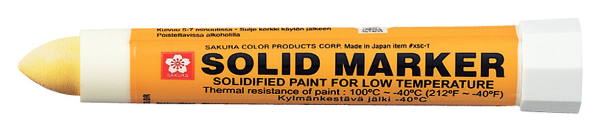 Ta wersja Solid Markera do niskich temperatur może pracować w temperaturach już od -40°C. Zawsze działa, gdziekolwiek i kiedykolwiek! Innowacyjny mechanizm skrętu “stay fresh” utrzymuje farbę świeżą i gotową do użycia. Jeśli marker wyschnie, wystarczy go trochę przyciąć nożem. Końcówkę można też przyciąć, jeśli potrzebne jest mniejsze znakowanie.