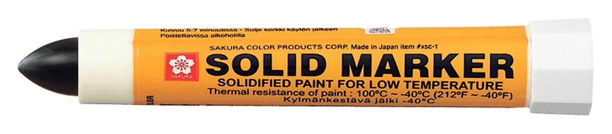 Ta wersja Solid Markera do niskich temperatur może pracować w temperaturach już od -40°C. Zawsze działa, gdziekolwiek i kiedykolwiek! Innowacyjny mechanizm skrętu “stay fresh” utrzymuje farbę świeżą i gotową do użycia. Jeśli marker wyschnie, wystarczy go trochę przyciąć nożem. Końcówkę można też przyciąć, jeśli potrzebne jest mniejsze znakowanie.