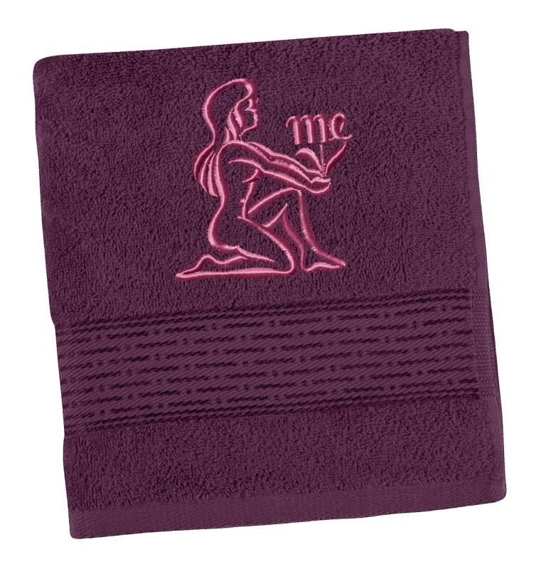 Froté osuška proužek s výšivkou znamení zvěrokruhu - Vínová - 70x140 cm