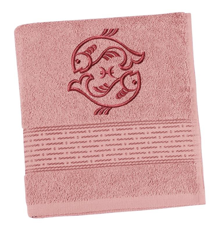 Froté osuška proužek s výšivkou znamení zvěrokruhu - Burgundy - 70x140 cm
