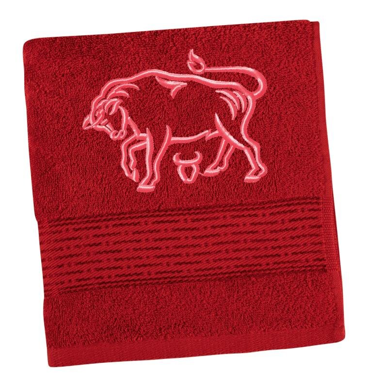 Froté osuška proužek s výšivkou znamení zvěrokruhu - Bordová - 70x140 cm