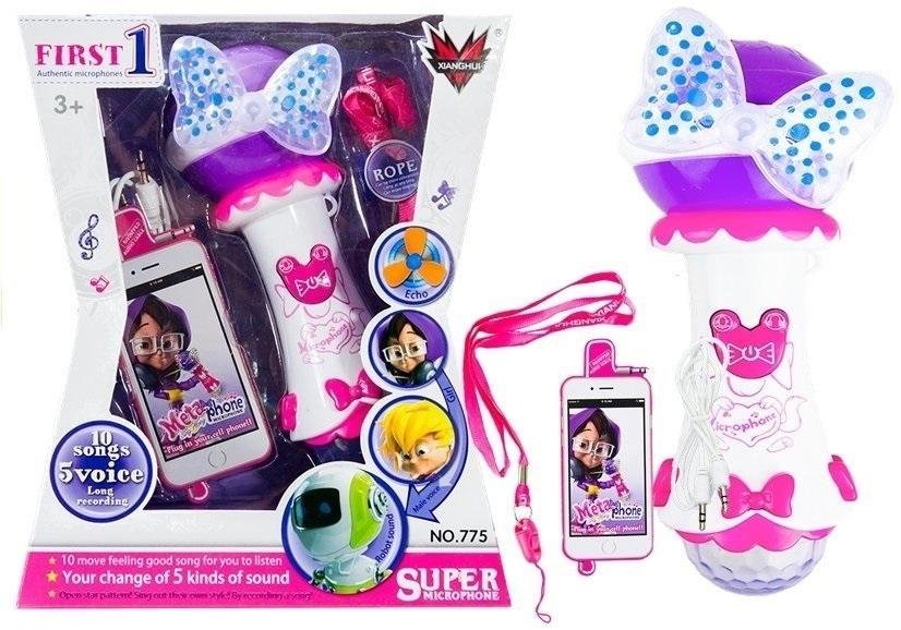 Obecność muzyki w życiu dziecka ma pozytywny wpływ na jego prawidłowy rozwój. Dziewczęcy mikrofon do karaoke jest doskonałym prezentem dla każdej artystki, która kocha występować na domowej scenie, tańcząc i śpiewając. Różowo-fioletowy mikrofon zaprojektowano z myślą o najmłodszych. Ozdobiono go detalami w białym kolorze, dzięki czemu prezentuje się rewelacyjnie. Kokardka i kula, umieszczona w dolnej części zabawi, świecą podczas występu, urozmaicając zabawę. Wielofunkcyjna zabawka pobudza rozwój dziecka na kilku płaszczyznach usprawnia słuch, zdolności muzyczne i rytmiczne małej gwiazdy, a także polepsza wyobraźnię, koncentrację i koordynację ruchową.