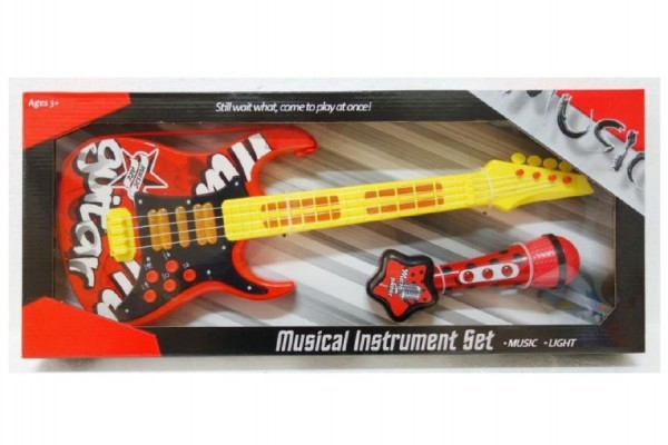 Kytara s mikrofonem plast 54cm na baterie se zvukem se světlem v krabici 61x26x6cm