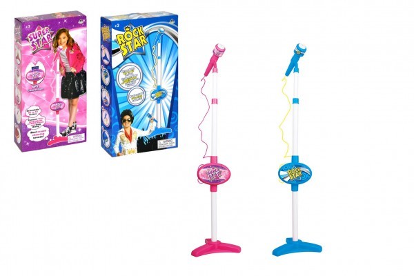 Mikrofon plast výška 110cm na baterie 2 barvy v krabici 20x39x7cm