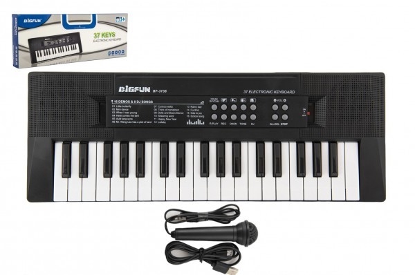 Pianko/Varhany/Klávesy 37 kláves plast napájení na USB + mikrofon 40cm v krabici 41x15x4cm