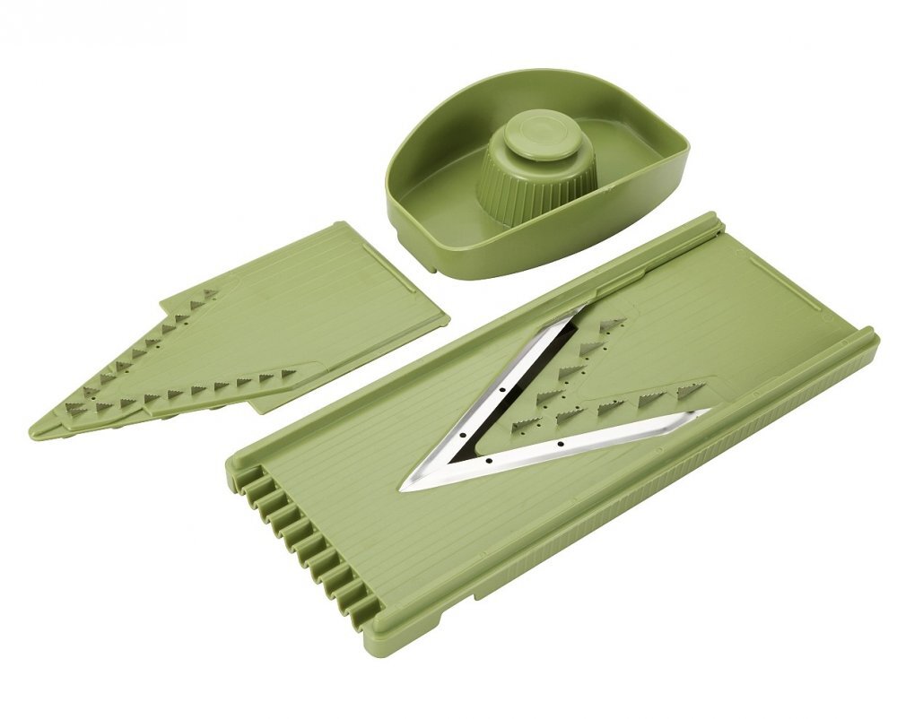 4PC MULTI SLICER SET - PLASTIC- 2PCS REMOVABLE BLADE - 1PC SAFETY HOLDER - 1PC PLASTIC SLICING BOARD - OLIVE číst celé