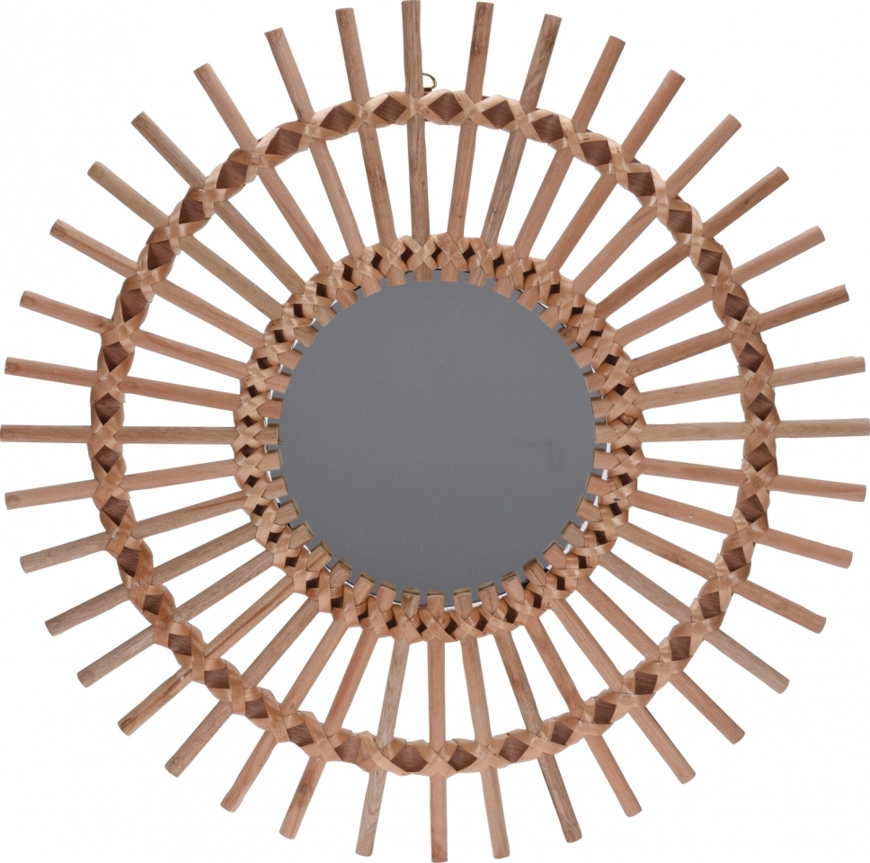 Dekorativní nástěnné zrcadlo připomíná slunce s paprsky. Zrcadlo je univerzálním doplňkem, který kromě praktických hodnot bude i efektní dekorací na zeď.