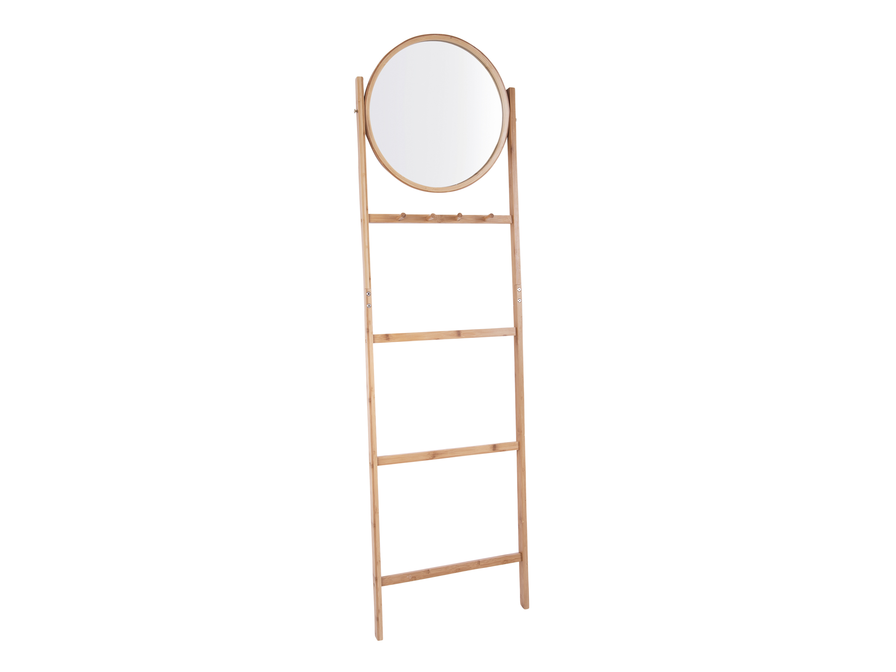 Nástěnný stojan bambusový s kulatým zrcadlem.