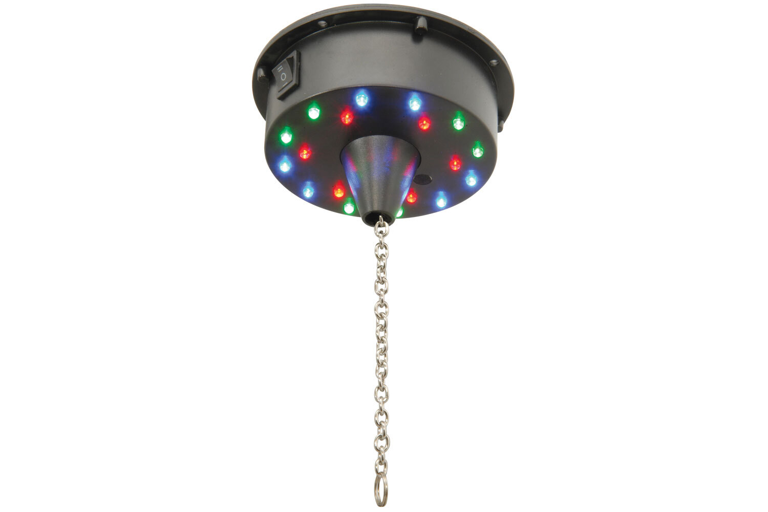 Velmi tichý bateriově poháněný motor pro zrcadlové koule do 3 kg. Obsahuje 18 RGB LED diod pro vytvoření úžasného světelného efektu. Možnost statické nebo pomalé změny barevného spektra.Typ baterie: 3x AA baterie (nejsou součástí balení)Max. zatížení: 3 kgRotace: 6 ot./minRozměry: 80 x 131...