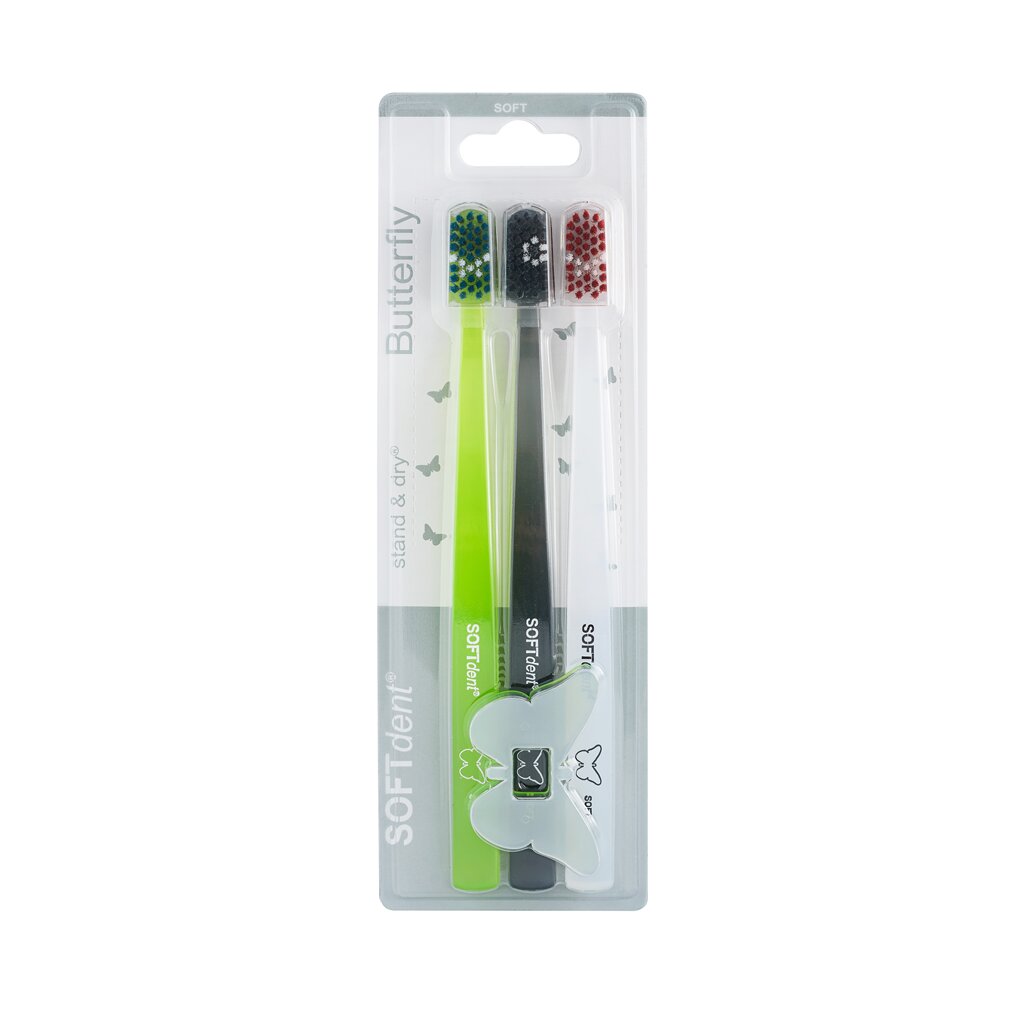 Zubní kartáček SOFTdent Butterfly STAND DRY Soft 3 ks