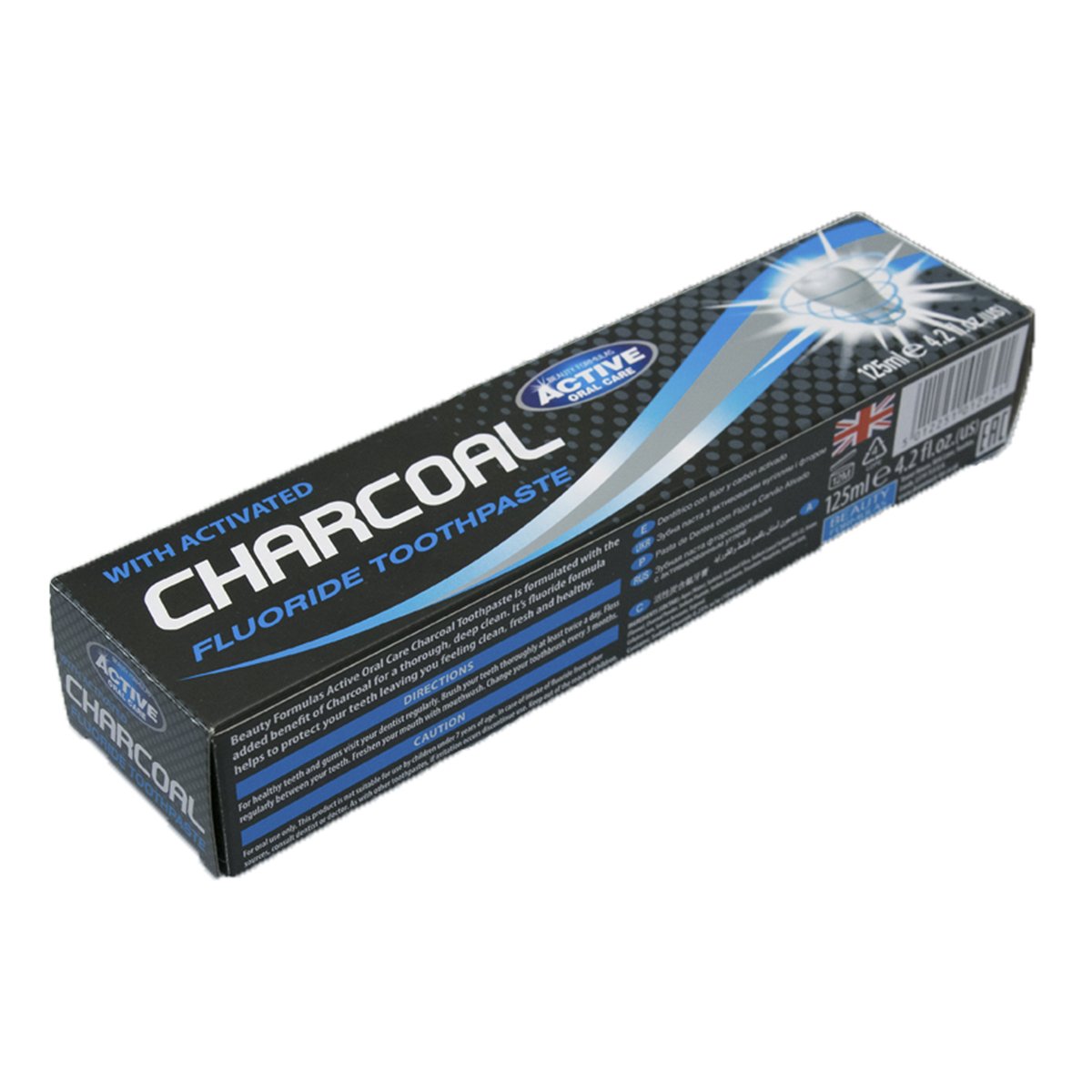 Fluoridová zubní pasta Beauty Formulas Charcoal Toothpaste s aktivním uhlím efektivně bělí zuby a čistí ústní dutinu.