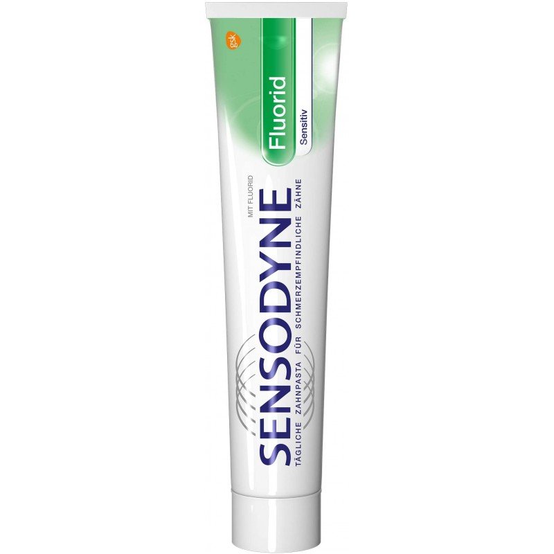 Sensodyne zubní pasta Fluoridem- 75mlzubní pasta s obsahem fluoridu a příjemnou extra svěžestí. Zubní pasta je vhodná pro citlivé zuby. Zanechává ochrannou vrstvu na zubní sklovině, snižuje citlivost a bolest zubů. Ideální použití je 2x denně, naneste zubní pastu na kartáček. Dávka pasty by měla být velikosti zrnka hrachu. Po čištění zubů vypláchněte ústa vodou.