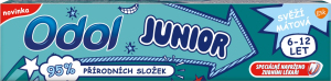 Odol zubní pasta Junior s fluoridem je speciálně navržena zubními lékaři pro děti ve věku 6-12 let. Má svěží mátovou příchuť a obsahuje 95 % složek přírodního původu.
