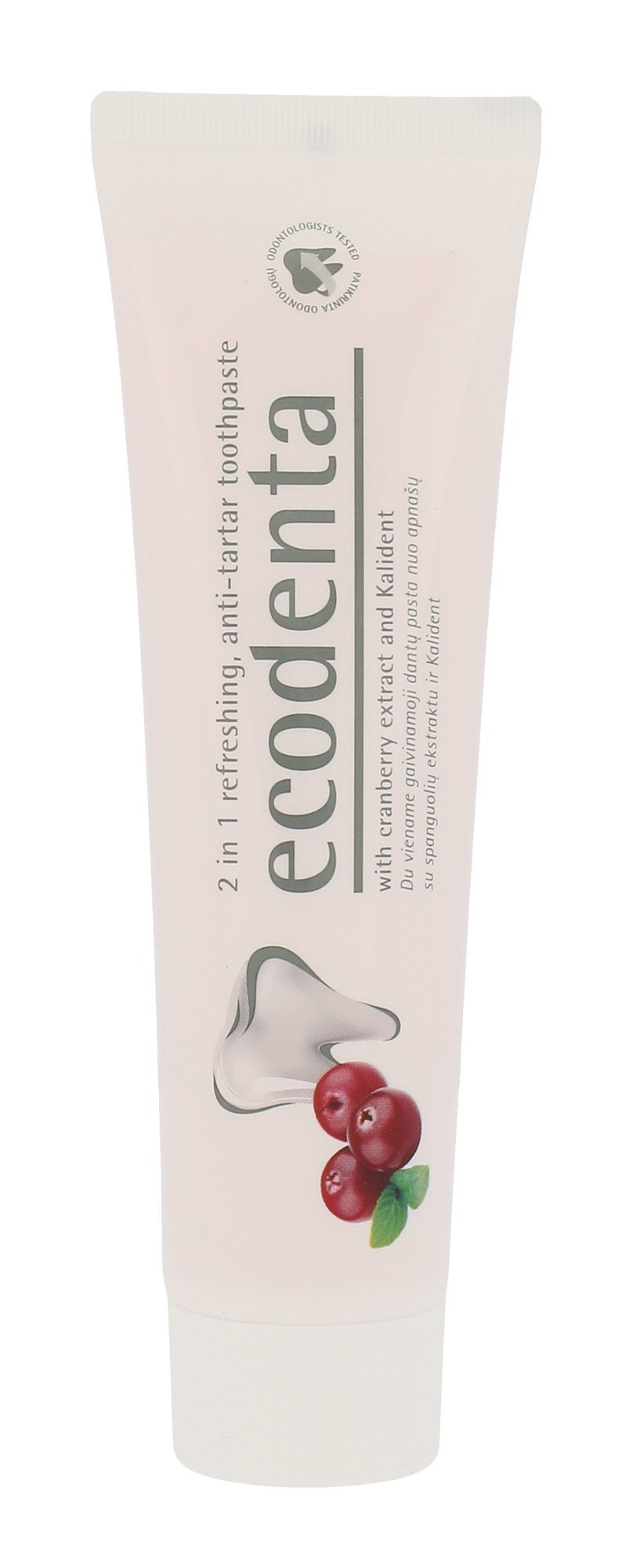 Zubní pasta** Ecodenta 2in1 Refreshing Anti-Tartar Toothpaste**. Zubní pasta Ecodenta 2in1 Refreshing Anti-Tartar Toothpaste zubní pasta proti zubnímu kameni. Obsahuje výtažek z brusinek a Kalidentum®, které chrání zuby před bakteriemi a zubním kamenem. **Aktivní látky**: · brusinky · Kalidentum® číst celé