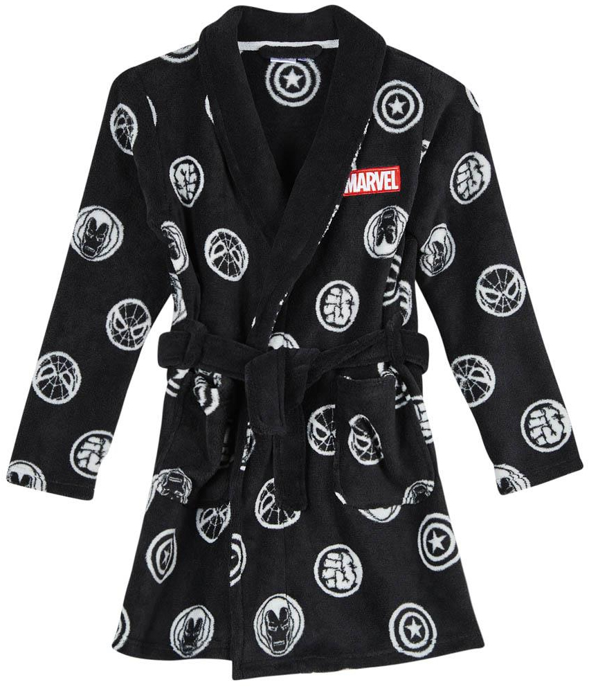Kvalitní černý župan pro každého menšího i většího fanouška superhdinů Avengers s motivem Heroes Icon Logo.