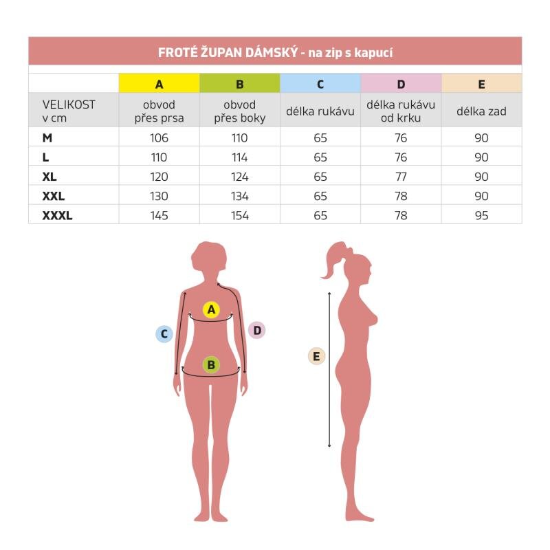 Župan je vyrobený z velice kvalitního froté materiálu ze 100% bavlny. Je dobře savý, hřejivý. Župan se zapínáním na zip, který má dva jezdce. Má kapsy,je opatřen poutkem na zavěšení. Praní na 60°C, možnost sušit v sušičce.