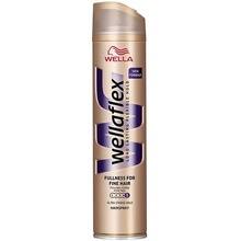 Lak pro jemné vlasy s ultra silnou fixací **Wella Wellaflex Fullness For Thin Hair Hairspray.** Lak na vlasy poskytuje účesu ultra silné zpevnění a zároveň přirozeně flexibilní účes díky technologii FlexActive. Unikátní složení pomáhá zvyšovat hustotu řídkých jemných vlasů. Rychle zasychá. Snadno se vyčesává. Chrání vlasové vlákno před negativním UV zářením. S lakem na vlasy Wellaflex Fullness For Thin Hair budou vaše vlasy objemné a účes krásný po dlouhoui dobu. **Použití:** Aplikujte rovnoměrně na vlasy ve vzdálenosti 20 - 30 cm.