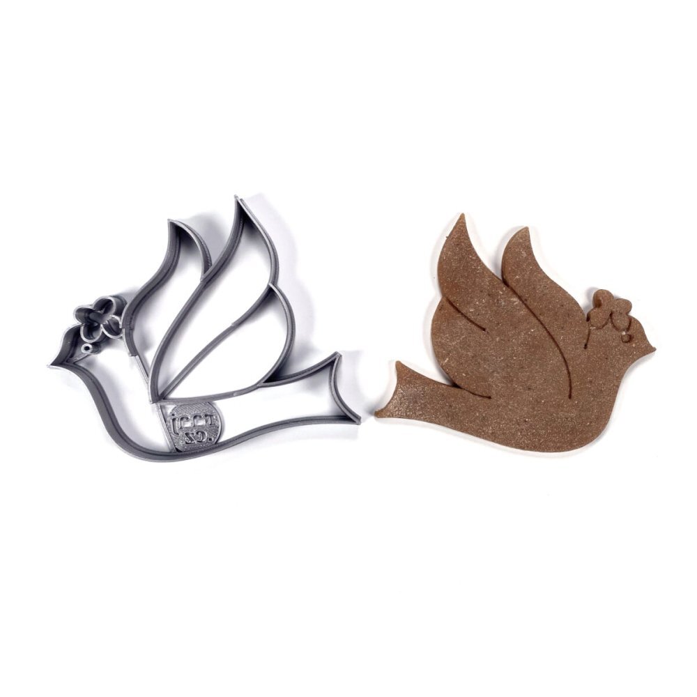 Vykrajovátko holubice je zhotoveno pomocí 3D tisku, z materiálu PLA plast (materiál biologicky odbouratelný), odolný do 50°C, nevhodný do myčky na nádobí. Středové linie vykrajovátka pomohou do hmoty přenést požadovaný tvar. Vhodné pro veškeré polotuhé hmoty jako je těsto (na perníčky, sušenky, linecké cukroví), fondán, marcipán, plastelína, Play-Doh, Modurit, keramická hlína, Fimo apod. Před prvním použitím a vždy po použití vykrajovátko omyjte jarovou vodou a důkladně osušte. Pro snazší vykrajování těst je vhodné vykrajovátko nejprve vložit do misky s moukou. Není určeno pro děti do 3 let, hrozí odlomení malých částí.