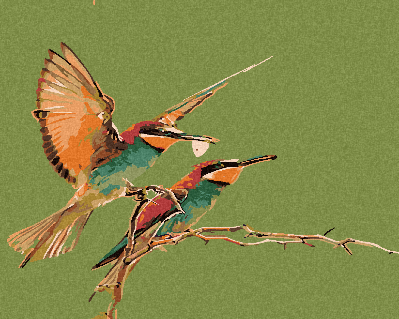 Malování podle čísel - DVA KOLIBŘÍCI - 40x50 cm, bez rámu a bez vypnutí plátna