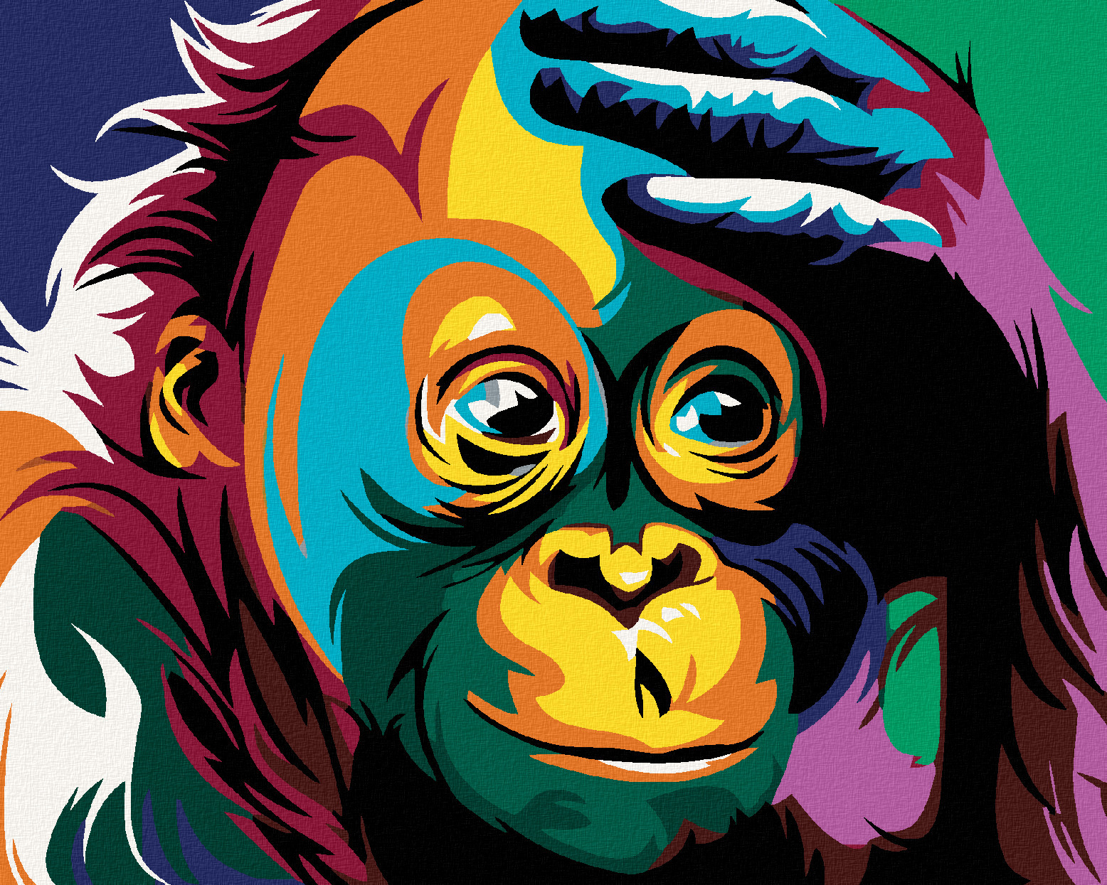 Malování podle čísel - MALÁ BAREVNÁ OPIČKA - 40x50 cm, bez rámu a bez vypnutí plátna