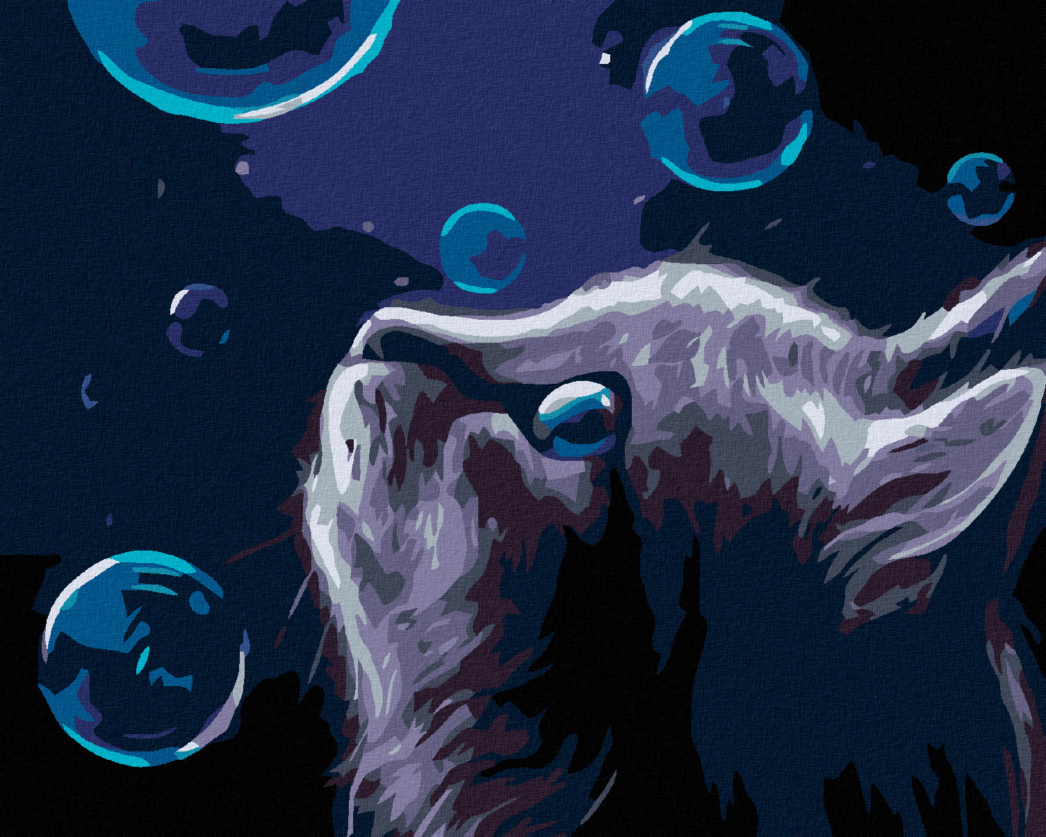Malování podle čísel - KOČKA A BUBLINY V NOCI - 40x50 cm, bez rámu a bez vypnutí plátna