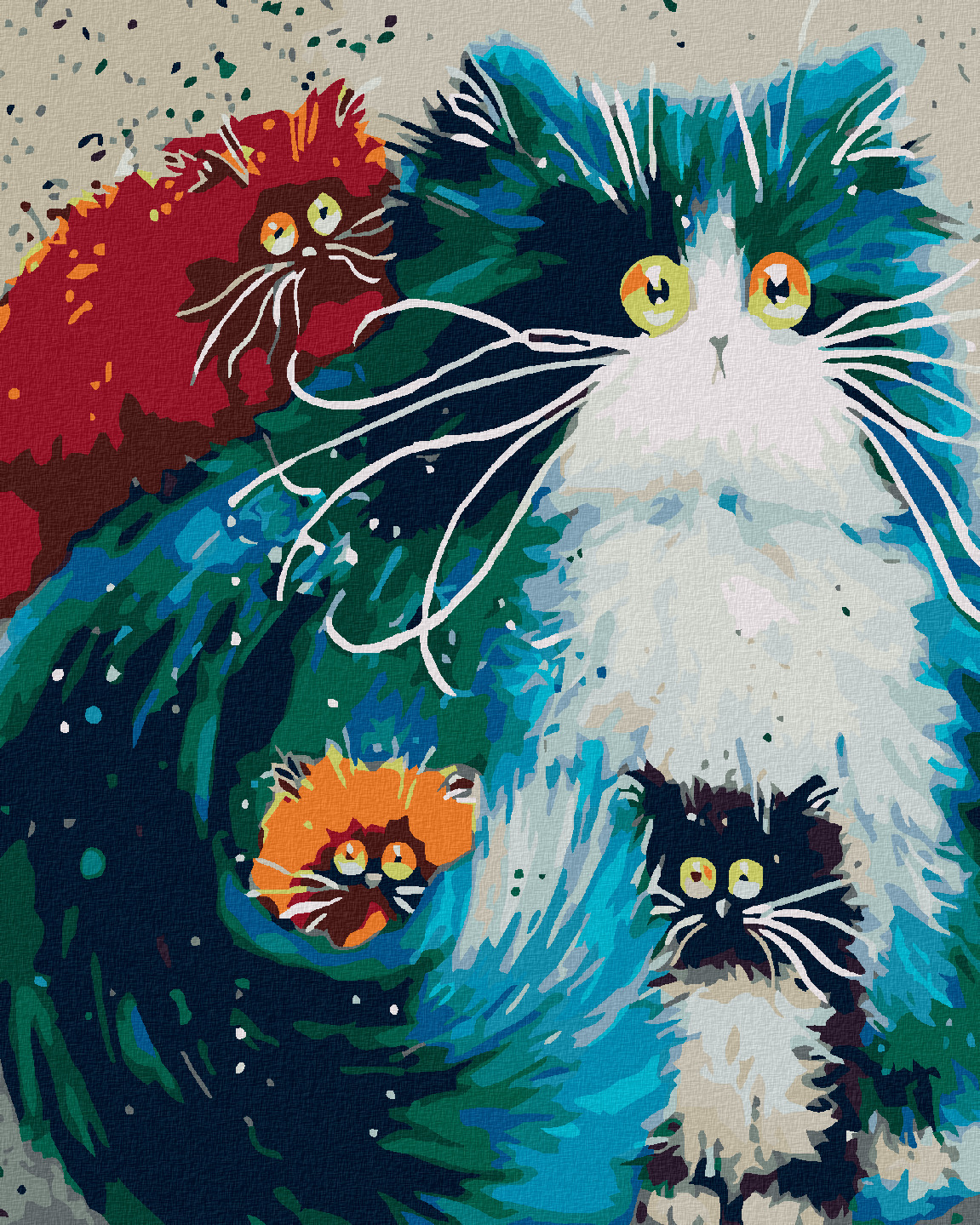 Malování podle čísel - OKATÁ KOČKA S KOŤATY - 40x50 cm, bez rámu a bez vypnutí plátna