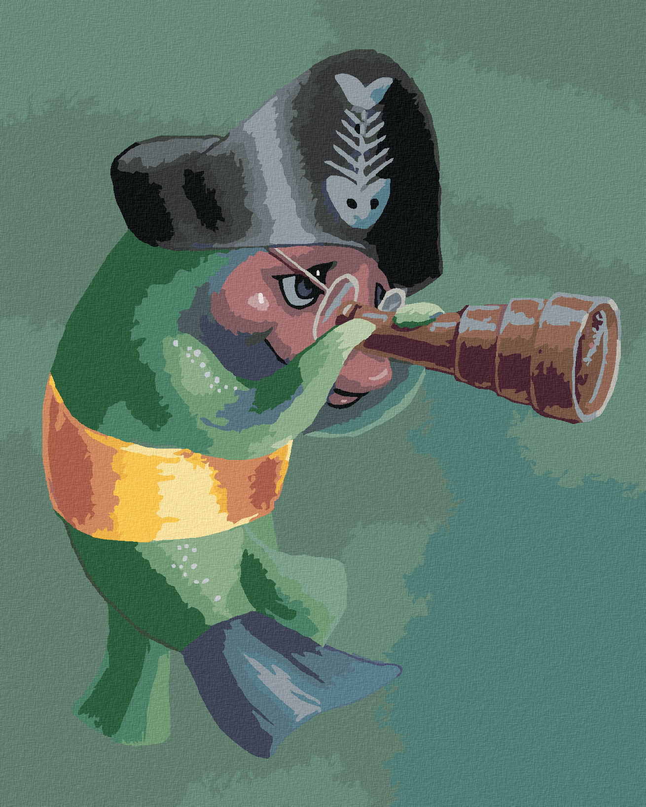 Malování podle čísel - RYBA PŘEVLEČENÁ ZA PIRÁTA (SUE ELLEN BROWN) - 80x100 cm, vypnuté plátno na rám